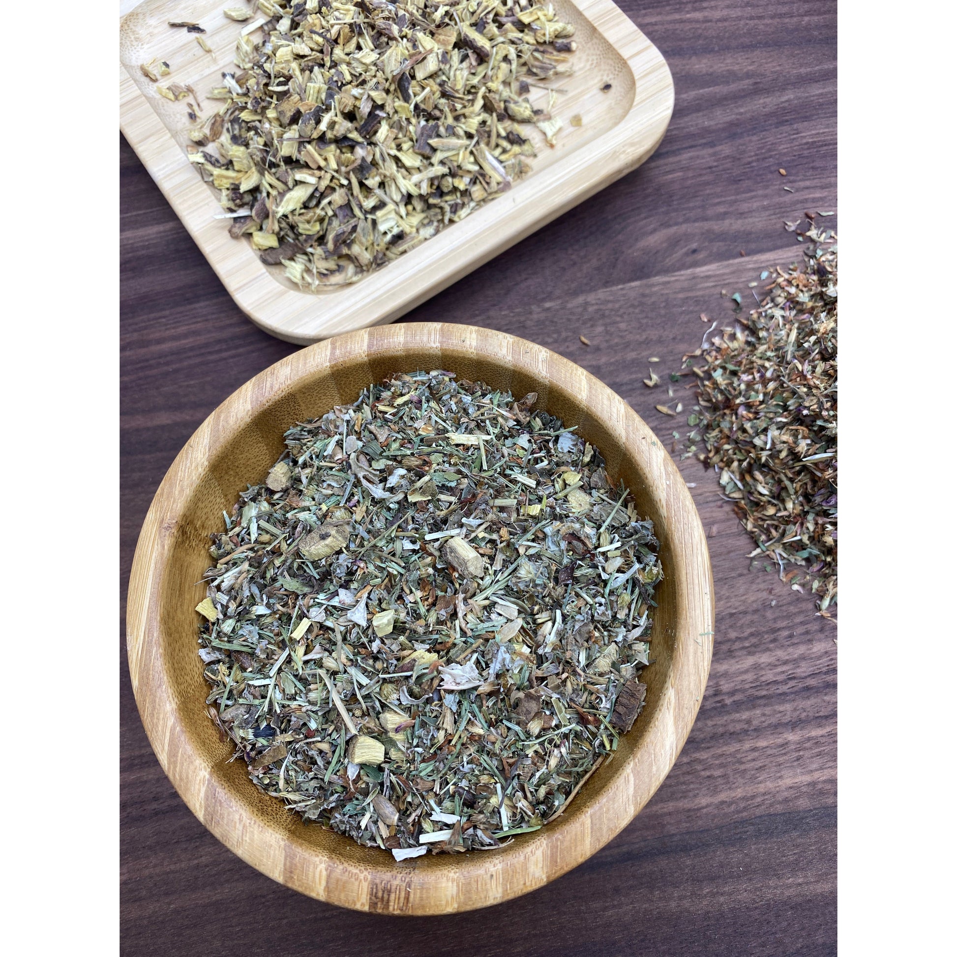 Ingredients: Liquorice, Raspberry leaves, Yarrow, Red clover, Icelandic moss, Common Horsetail, Silybum marianum and Shepherd's purse.